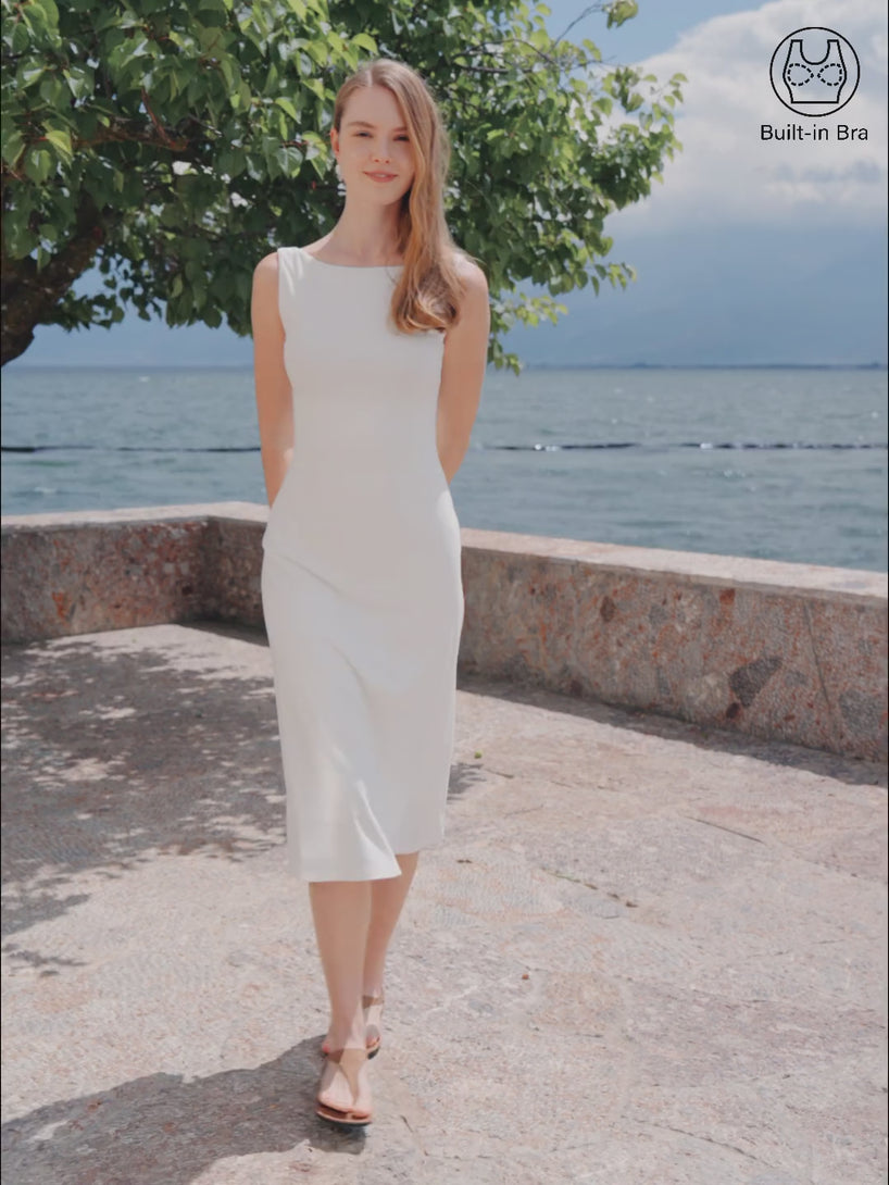Classy in the front, stunning in the back. It features a clean boatneck and a striking open back. With built-in bandless bra pads and a lined finish, you get all the comfort you need without sacrificing style.