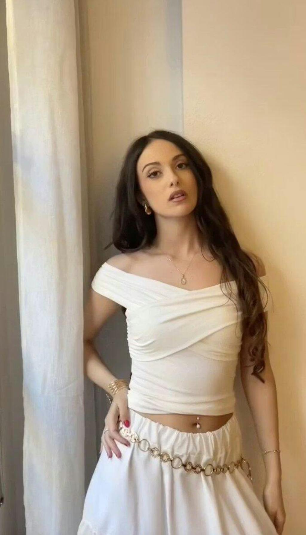 This criss - cross off - shoulder brami top is so pretty! The Sahara color is super gentle and perfect for spring. The quality is excellent. The fabric is light and breathable, making it extremely comfortable to wear. The fit is very slimming, and it looks amazing with jeans.