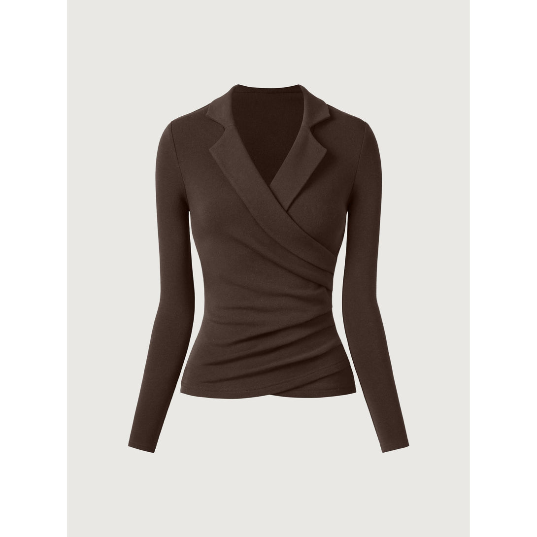 Elevate your everyday style with our Eco-Mousse® Collared Surplice Top, featuring a flattering V-shape that beautifully elongates your neck. The cut is designed to emphasize your curves and accentuate your natural silhouette. Inside, the thermal brushed material offers exceptional warmth and insulation, making it ideal for cooler days. The soft and stretchy rib ensures a comfortable, snug fit that moves with you.