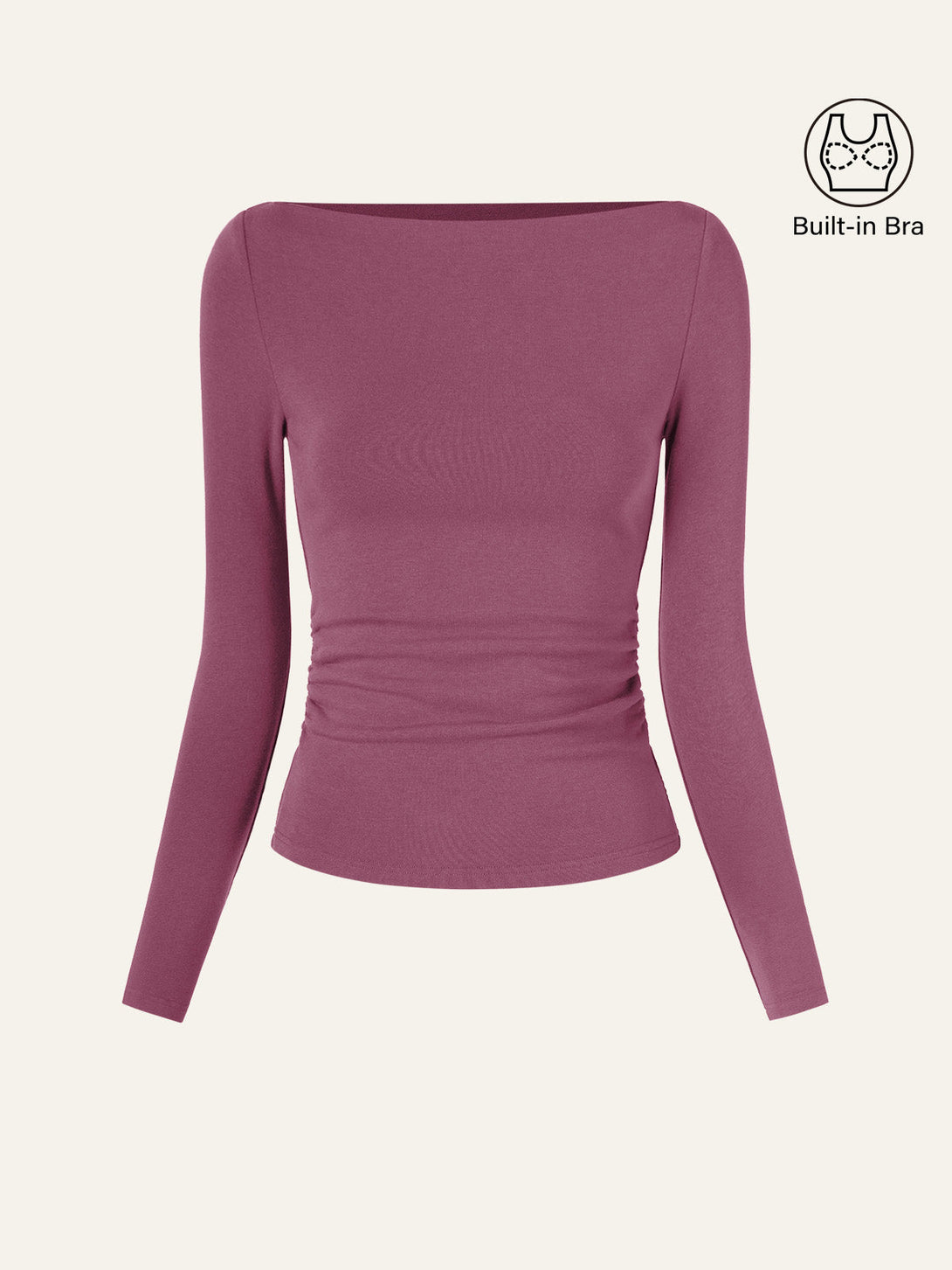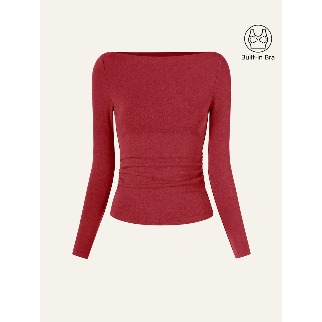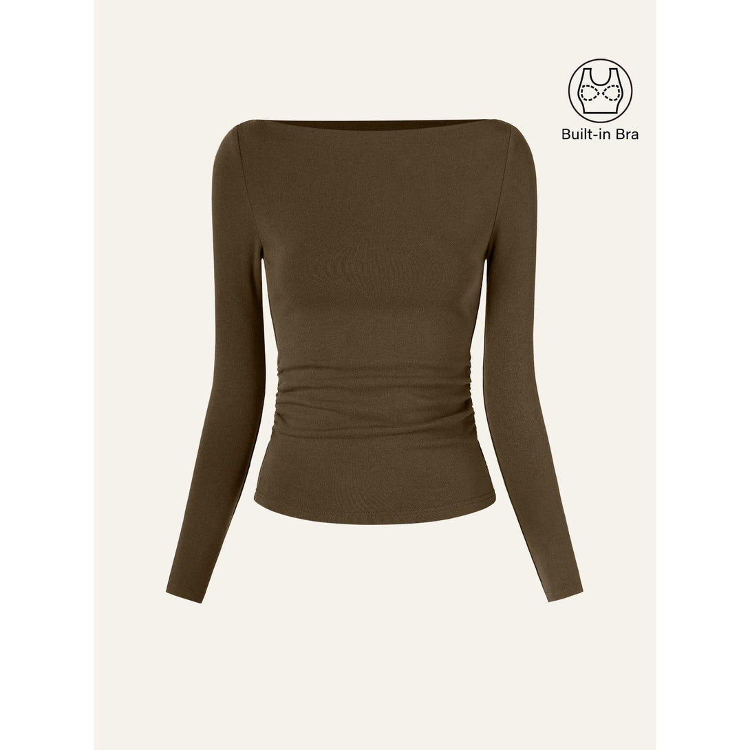 Our Eco-Mousse® Modern Side Ruched Boatneck Brami Top is perfect for every day, with a flattering boat neck silhouette that beautifully frames your face and shoulders. The delicate folds are thoughtfully placed to accentuate your waistline, offering subtle shaping that enhances your natural curves. It also features built-in pads for light support and coverage, even without a bra.