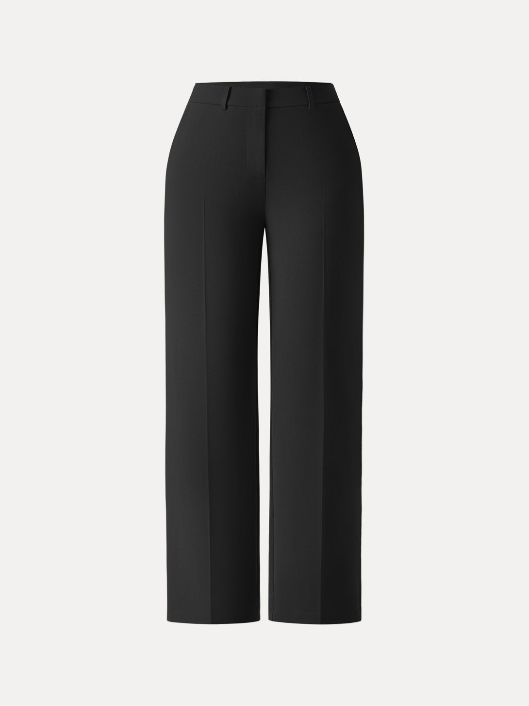 You will love how these mid-rise straight-leg trousers give you a polished, tailored look. The double waistband design and sharp front crease add sophistication, while pockets and belt loops keep them practical and versatile.