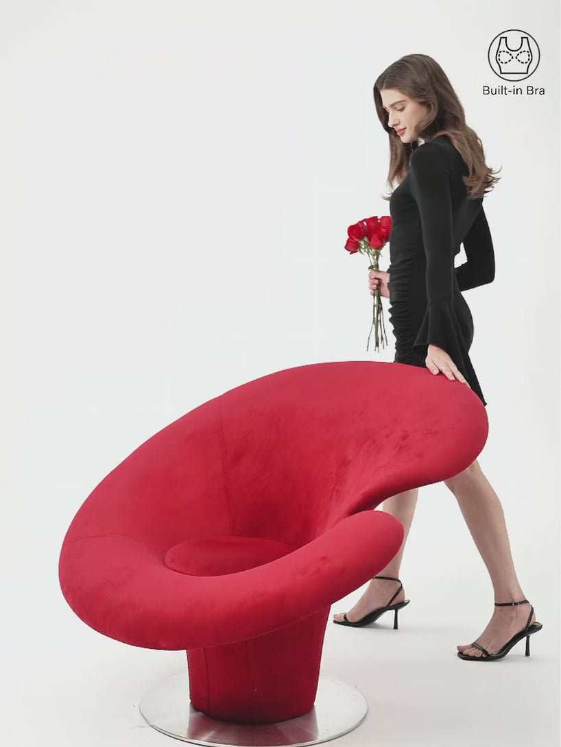 A playful, feminine mini dress that balances a clean mockneck with flounce sleeves that move beautifully as you walk. The ruched sides softly shape your waist without feeling tight, and it includes removable bra pads for comfort and support.