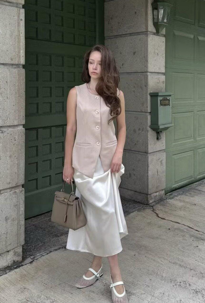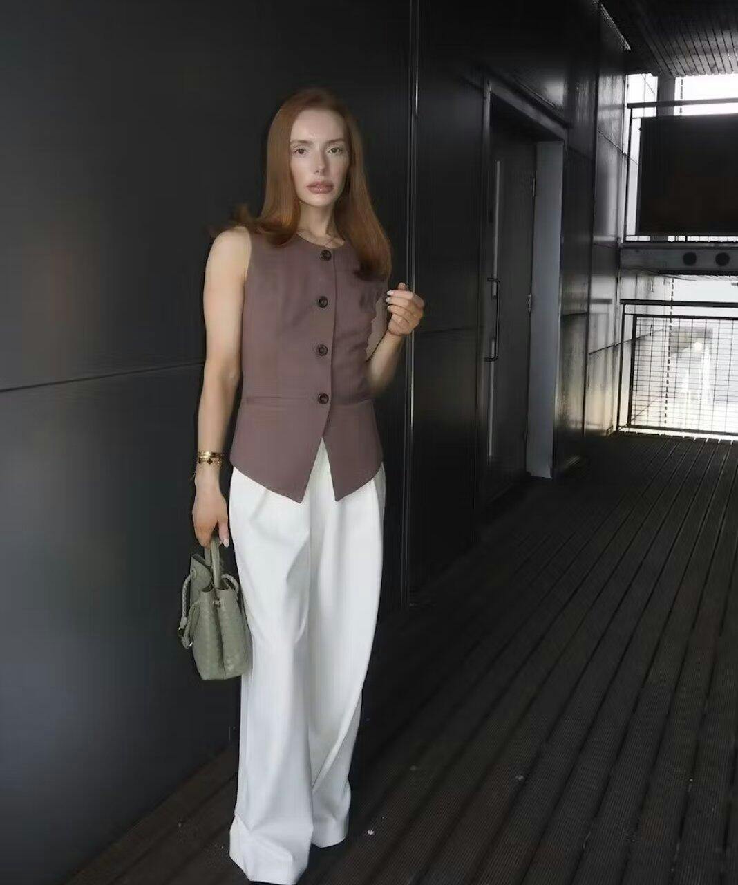 Such a cute vest! The length’s perfect for me. The fit’s great—makes me look both professional and stylish. No extra care needed, just toss it in the washer. Super convenient for lazy folks like me, lol. Girls, snap it up—you won’t regret it!