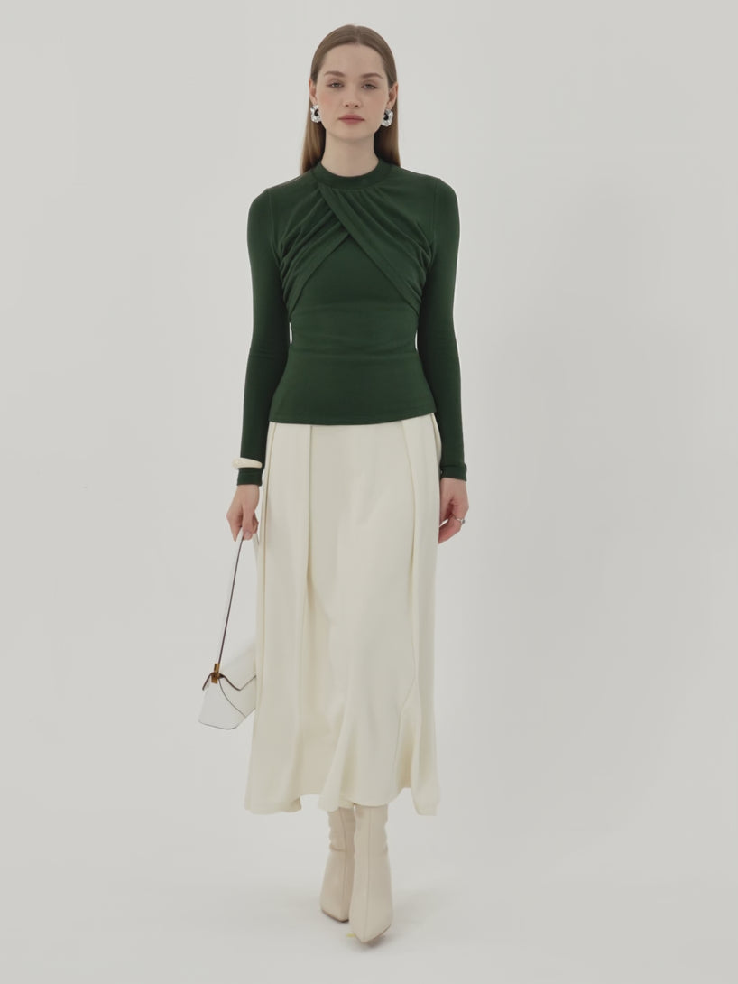 You’ll love this top featuring a unique overlapping ruched design. Hitting at the high hip and finished with removable bra pads for comfort and support, it’s a standout piece that feels effortlessly refined.