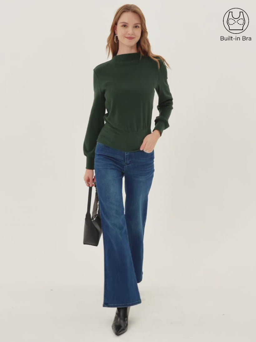You’ll love this regular-fit top featuring a mockneck and elegant bishop sleeves that add soft volume and charm. Designed with removable bra pads for comfort and support, it’s a chic essential.