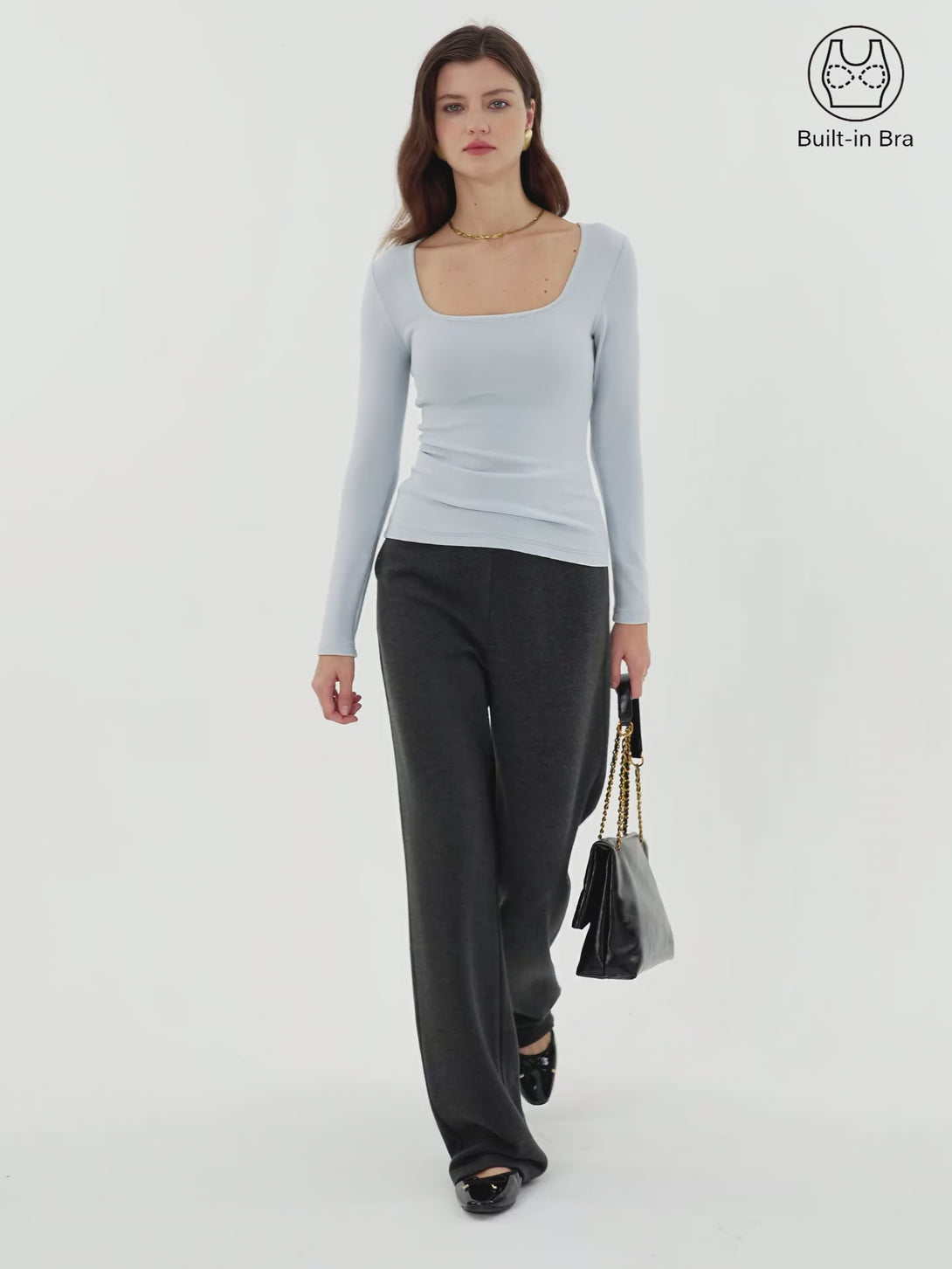 This square neck top features a clean and modern silhouette. Made with softly brushed fabric and removable bra pads for added convenience and support, it delivers that cozy, body-hugging feel perfect for layering.