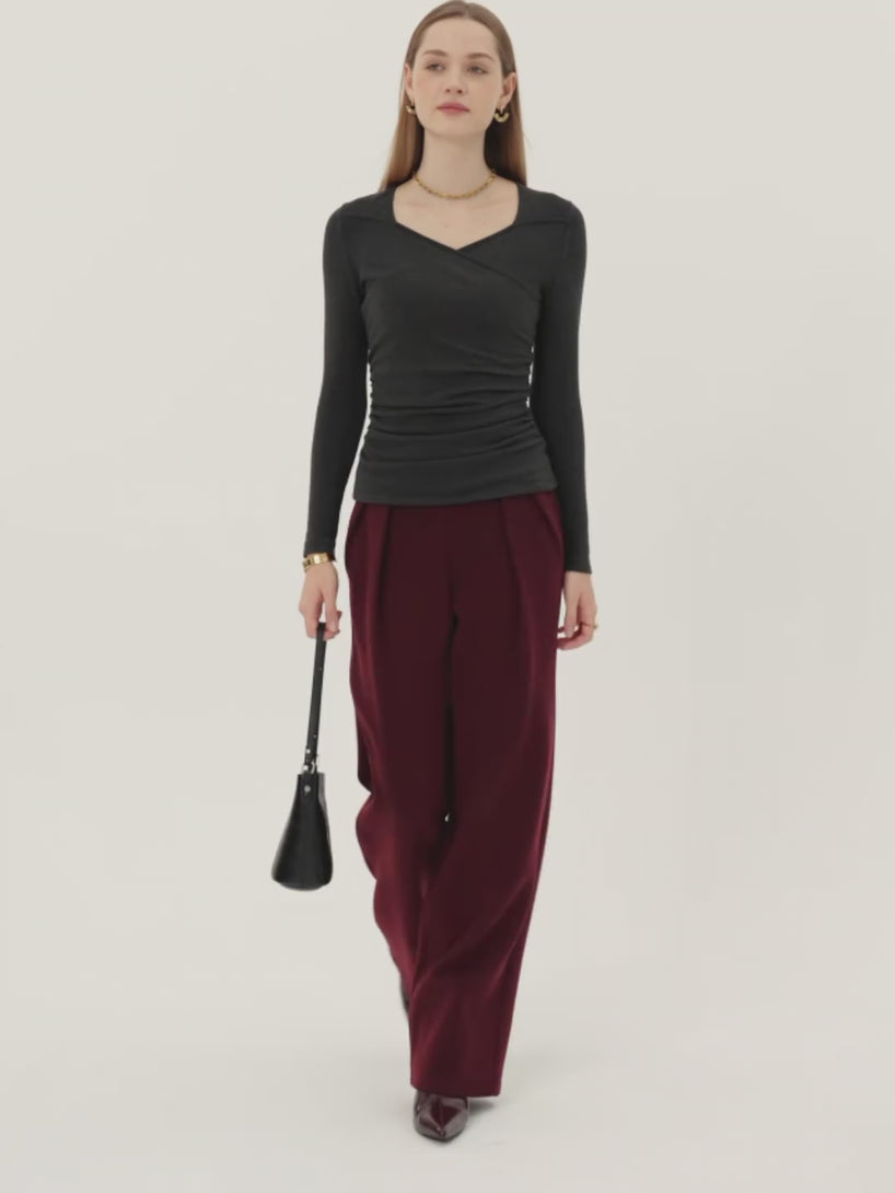 You’ll love this surplice V-neck top featuring ruched waist that flatters your shape. Made with brushed fabric for a cozy, smooth feel and designed to hit at the high hip, it’s the perfect mix of comfort and understated elegance.