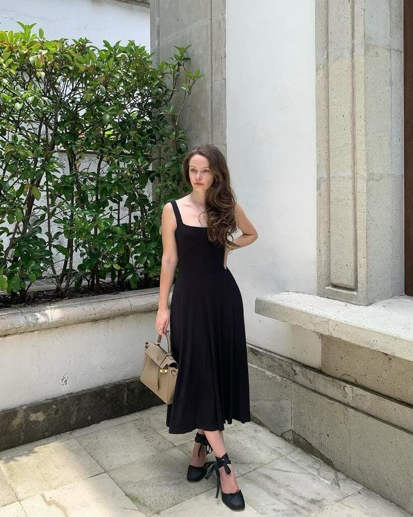 The slim fit flatters your figure, while the umbrella silhouette flows beautifully with every step. Thoughtfully designed with removable bra pads for reliable support and pockets for everyday convenience—this is the dress you'll reach for again and again.