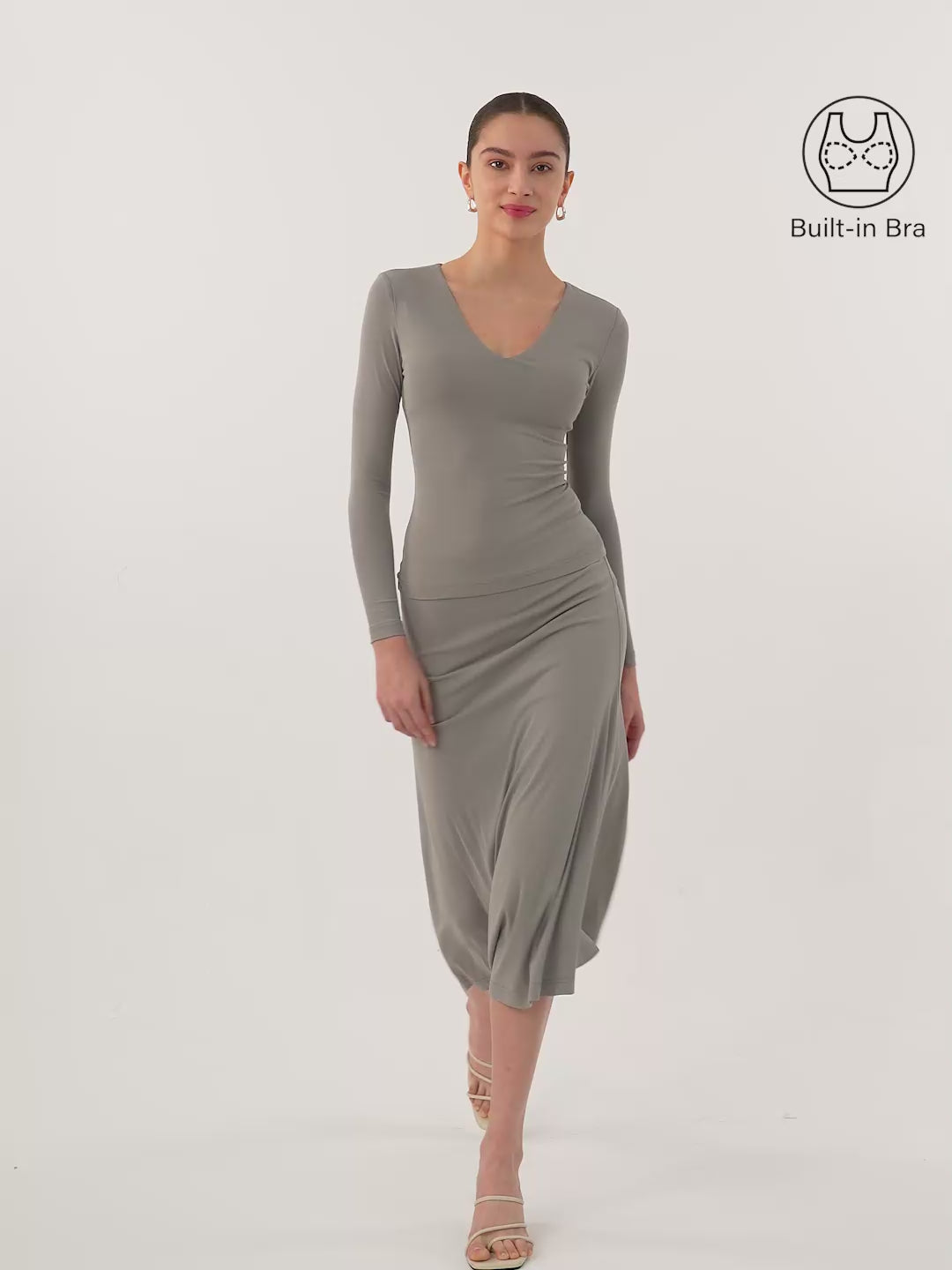 Our sleek V-neck Long Sleeve Brami Top adds a touch of sophistication to your everyday wardrobe. The hip-length cut ensures you stay confidently covered, while our Removable padding offers extra support and comfort, even without a bra. Made for you to pair effortlessly with any outfit, this is the versatile staple your closet needs.